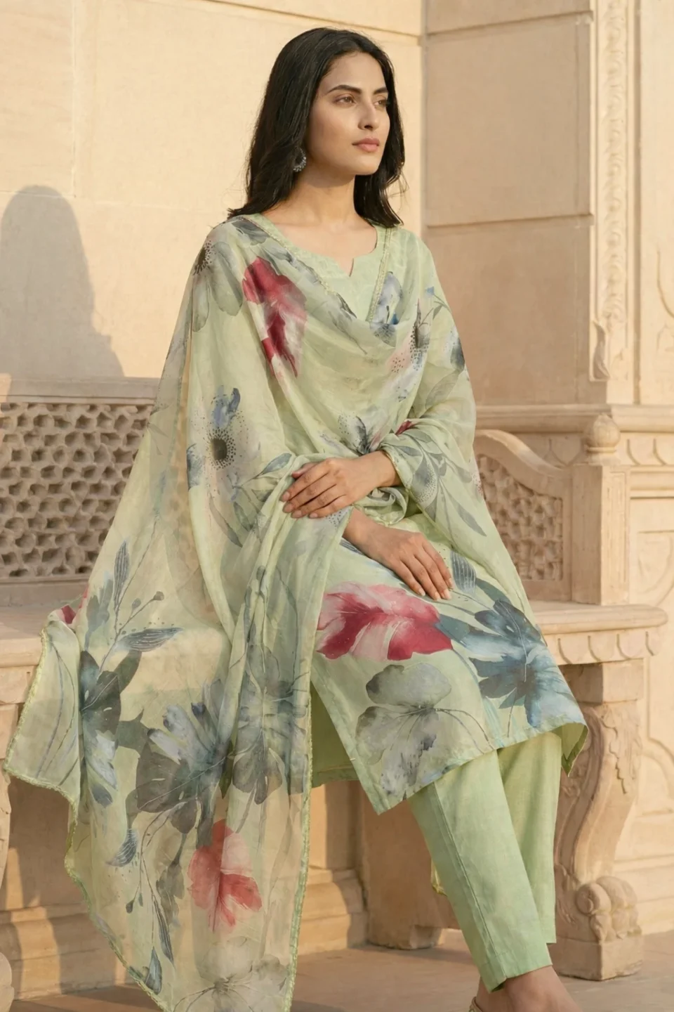 Pink Floral Printed Straight Kurti