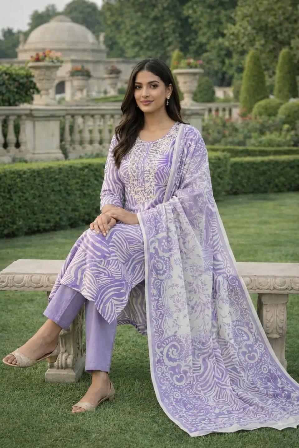 Lavender Printed Kurti Set