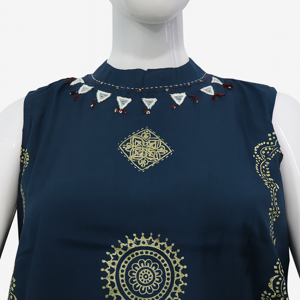 Embrace timeless elegance with the Gulorian Indigo Mandala Embroidered Kurti Set.