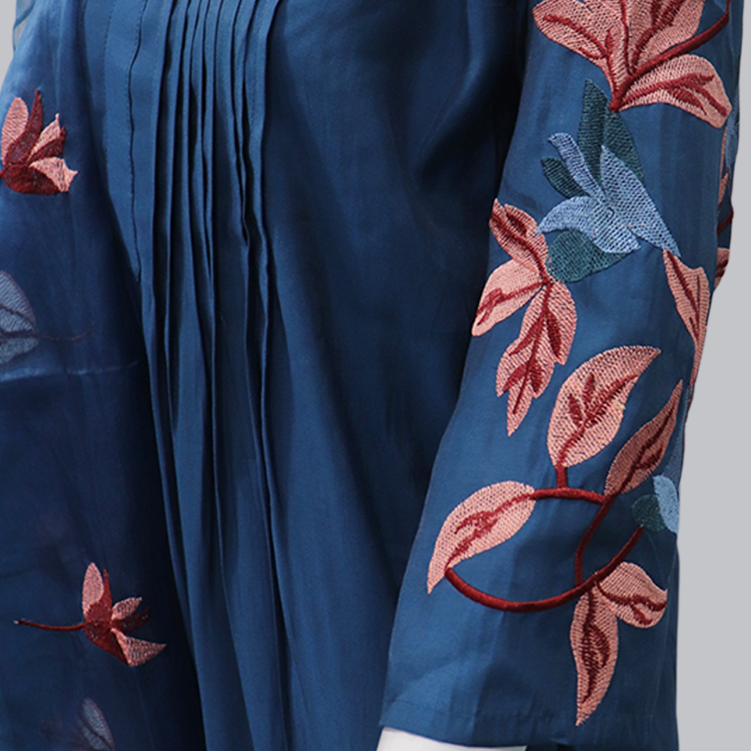 Step into sophistication with the Gulorian Midnight Blue Thread Embroidered Kurti Set, designed to reflect understated luxury.