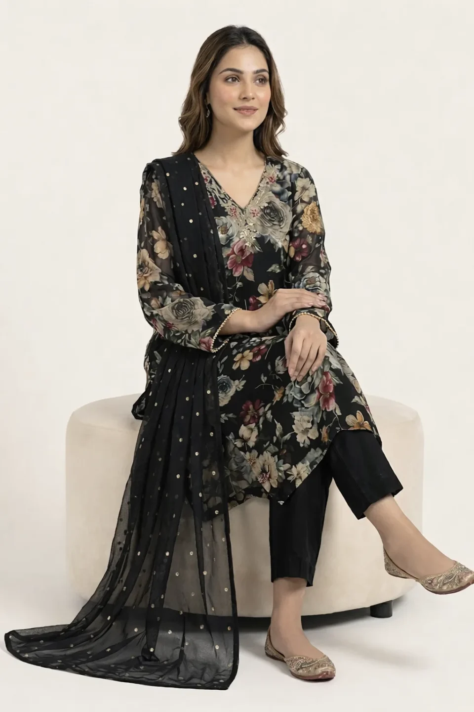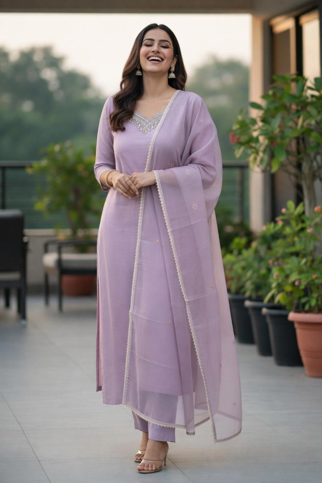 A luxurious lavender kurti set featuring delicate embroidery and a soft, sheer dupatta. Designed with a refined silhouette and premium finish, this set is perfect for elegant occasions and sophisticated ethnic wear.