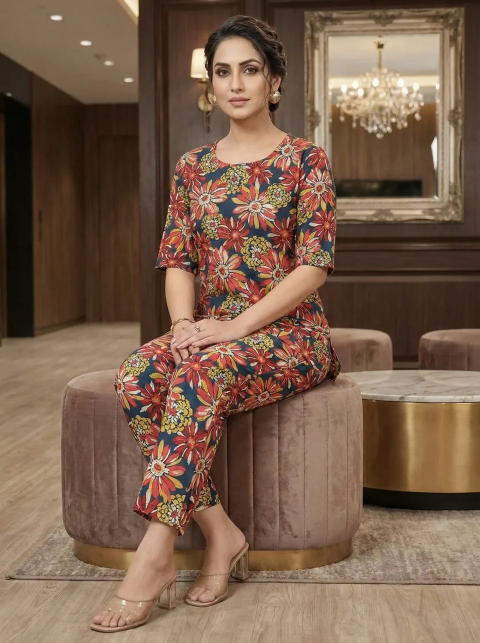 Soft, subtle, and sophisticated—Lavender Mist Kurta Set is designed for the modern woman who loves timeless silhouettes. Featuring a flattering Angrakha-style neckline with delicate floral thread-work and side-button detailing, this set offers a perfect blend of comfort and style. The straight-cut kurta is paired with matching wide-leg trousers, making it an ideal choice for office wear, brunch dates, or casual festive gatherings.