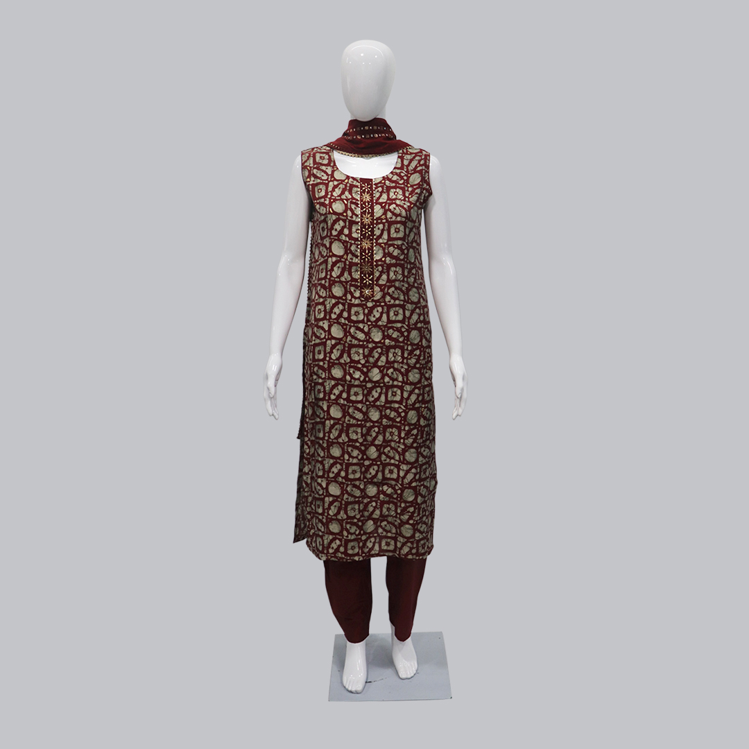 Elevate your ethnic style with this Maroon Bandhani Printed Kurti Set from Gulorian. Crafted with traditional Bandhani-inspired prints, this sleeveless kurti exudes a graceful ethnic appeal. The neckline is beautifully embellished with intricate mirror and thread work, paired with matching solid maroon pants and a light dupatta. Perfect for festive gatherings, casual outings, or traditional functions, this outfit offers both comfort and timeless elegance.