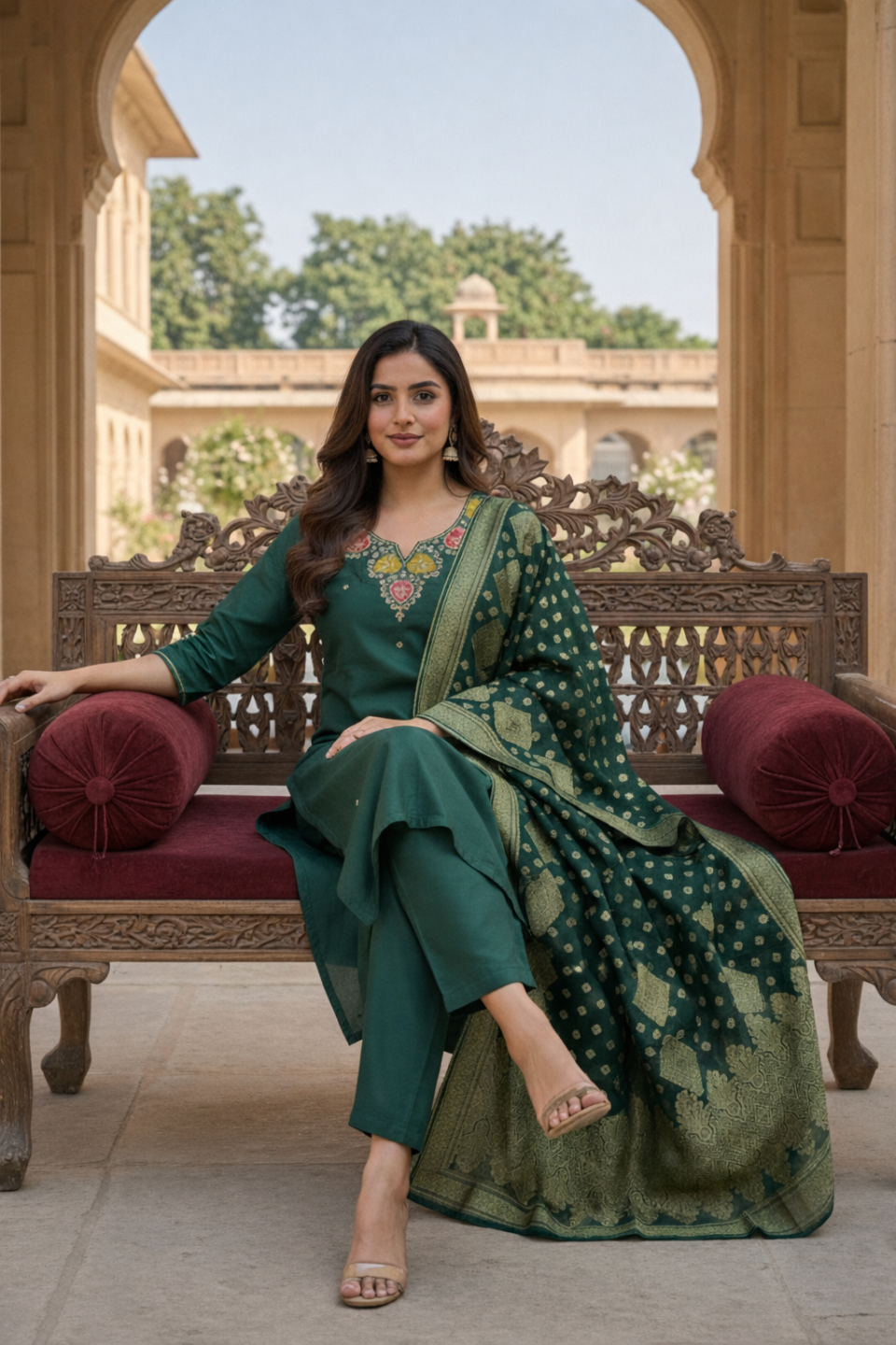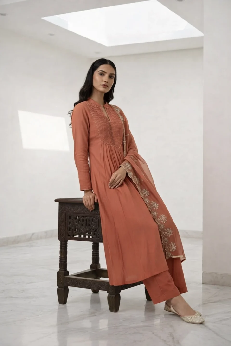 Elegant maroon long kurti featuring subtle embroidery and a straight silhouette, perfect for refined ethnic styling.