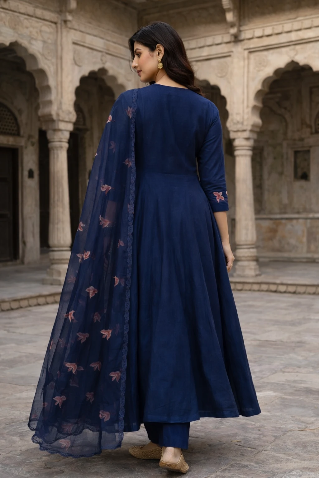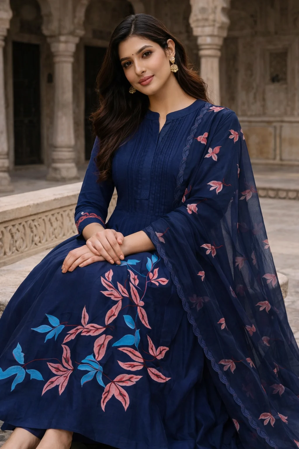 Be the first to review “Navy Blue Floral Embroidered Long Kurti Set with Dupatta” Cancel reply