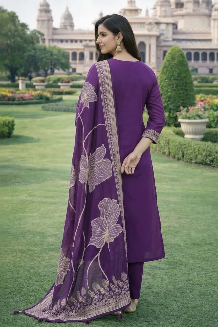Royal Purple Embroidered Kurti Set
